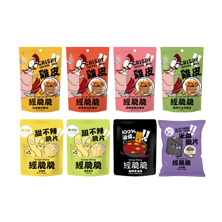 經典台灣味大集合! 夜市小吃炸雞皮、甜不辣、炸米血也能變零食! 知名電視節目「小明星大跟班」、「11點熱吵店」推薦!一口就上癮! 經脆脆暢銷8包組,美食展特惠59折,再送潮流大大手提袋!