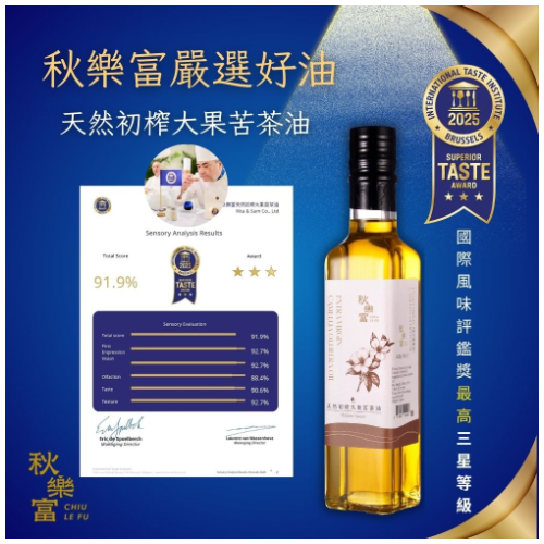 使用大果苦茶籽天然初榨,含大量單元不飽和脂肪酸、茶多酚與維生素E。香氣飽滿,營養美味。