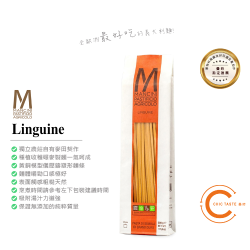 曼時 CHIC TASTE 曼奇尼 Mancini Linguine 杜蘭小麥義大利長麵500g