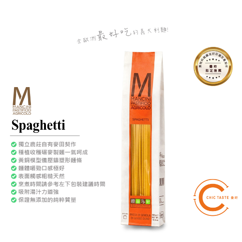 曼時 CHIC TASTE 曼奇尼 Mancini Spaghetti 杜蘭小麥義大利長麵 500g