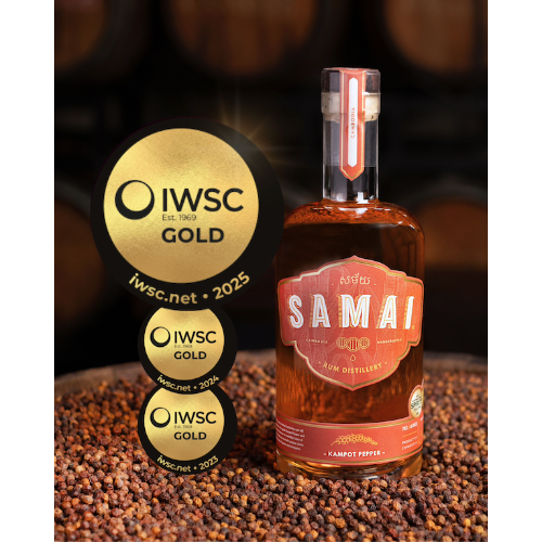 The first-of-its-kind, our Samai Kampot Pepper Rum is highly surprising and delightful. Specially crafted from a blend of aromatic red Kampot Pepper, combined with carefully hand-picked aged rum, Samai Kampot Pepper Rum holds a flavour profile of its own. Fresh, with beautiful sweet and fruity notes, the delicious red Kampot pepper adds just the right kick to this unusual rum. An authentic taste of Cambodia to enjoy neat or in exceptional cocktails.