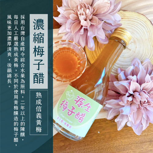 Tasting good vinegar is akin to tasting fine wine, with a rich and mellow flavor that is not overpowering.<br/>Every day, meticulously selected ripe yellow plums from Xinyi Township are handpicked for maturation and seasoning, providing a natural fruity aroma that is refreshing and smooth, making it a delightful experience with each sip.<br/><br/>.Locally sourced fruit, naturally brewed: A health-promoting base vinegar rich in enzymes, brewed for over two years!<br/>.Unique lactic acid fermentation: Abundant lactic acid bacteria and beneficial microbes contribute to a sweet and palatable taste!