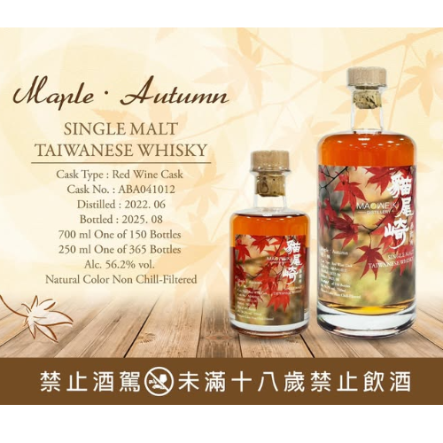 Home / For Visitors / 2025 Exhibitor Product / Maoweiki Maple ・Autumn 2022.06~2025.08 Red Wine Cask #ABA041012 Single Malt Taiwanese Whisky 700ml /250ml 56.2%