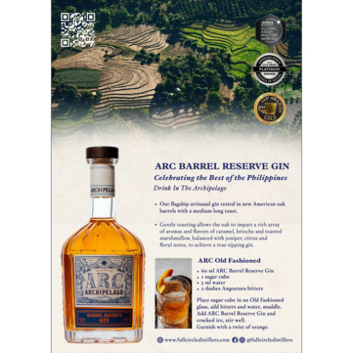 ARC Barrel Reserve Gin: Rested in new American Oak barrels with a medium long toast (Burgundy style), Full Circle’s flagship gin pulls flavors and aromas from the oak, including vanilla bean, caramel, dark chocolate, brioche and toasted marshmallow. 700ml, 45% alc/vol.