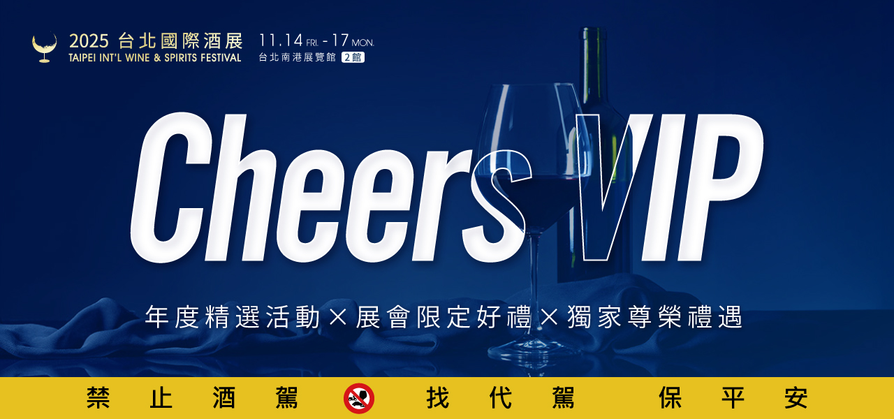 為回饋長久以來支持台北國際巡迴酒展的酒友,2026年將募集「Cheers VIP」!