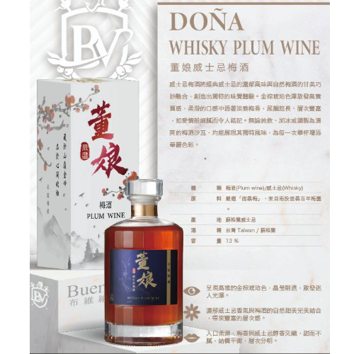首頁 / 參觀資訊 / 2025 參展商產品 / 董娘威士忌梅酒