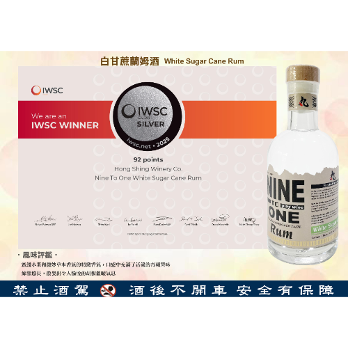 鮮榨甘蔗的清香、圓潤柔和,輕盈的酒體