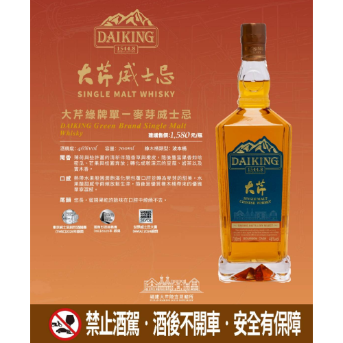 首頁 / 參觀資訊 / 2025 參展商產品 / 大芹綠牌單一麥芽威士忌