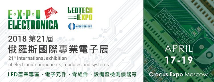 俄羅斯國際電子展今年為第21屆,每年舉辦一次,展覽位於莫斯科最新之展場Expo Crocus展覽館。此展是俄羅斯和整個東歐地區最具權威、規模最大的電子基礎產品專業性展覽會。近期幾屆特設LED科技展區,台灣LED技術為全球之權威,可藉此機會在展場上發揚。同類專業展覽中佔據領先地位。