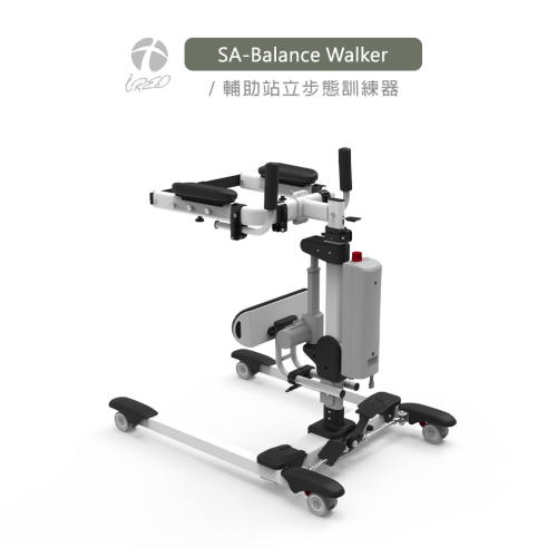 SA-Balance Walker is a motorized standing assist walker with forearm supports.Using slings and elbow rests, it supports the hips and elbows, and with electric actuators, it helps users rise from sitting to standing, enabling guided walking training. It provides moderate weight support during walking and is commonly used in indoor flat spaces such as hospital corridors, nursing facilities, rehabilitation centers, or home environments.It is designed for individuals with limited mobility due to weakness, poor balance, or low endurance, helping improve physical function, enhance mobility, and strengthen muscles.