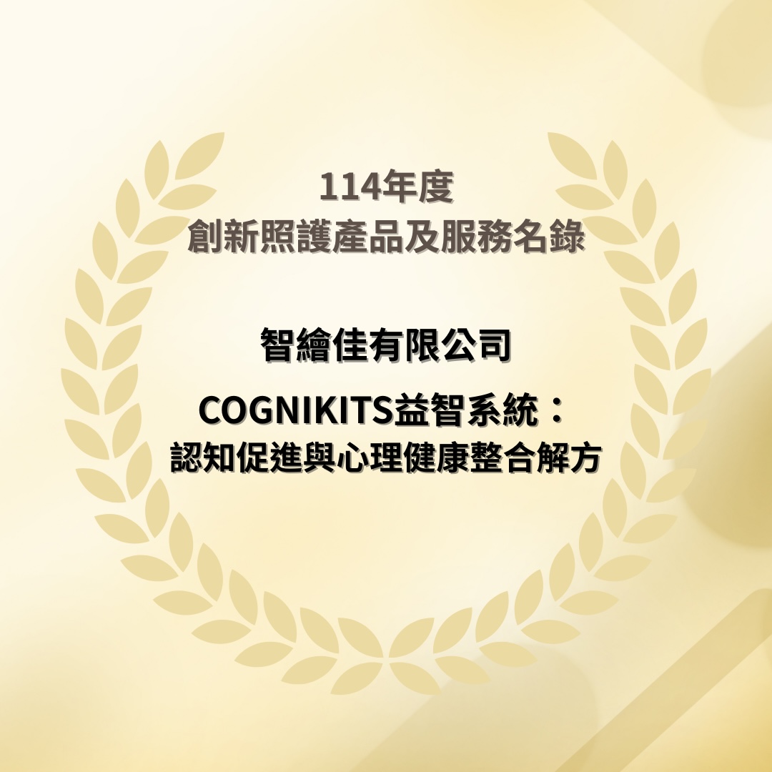 Cognikits 益智系統榮獲經濟部中小及新創企業署「創新照護產品及服務名錄」肯定,機構在導入時可結合政府補助資源,有效降低服務推動門檻,使認知促進課程能更容易在不同場域中持續發展。補助相關資料請參考:https://startup.sme.gov.tw/spp/sppnews/20250826001