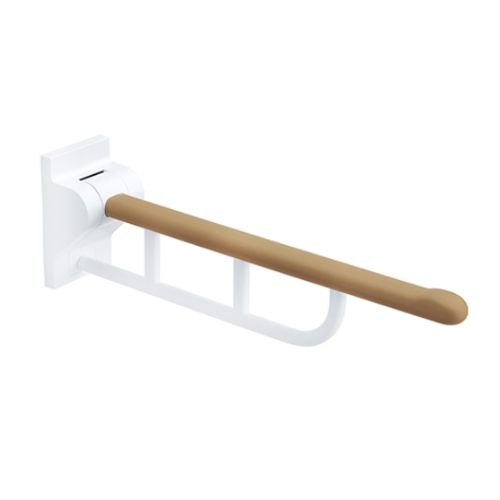 橢圓設計更易抓握,為上下可動的昇降類型 附有靜止裝置,即使離手也不會急速掉落,安全性更高操作力10N以下,操作輕巧照護協助使用時,可將扶手上掀,不會防礙使用,並確保使用空間協助移乘動作與坐姿安定.
