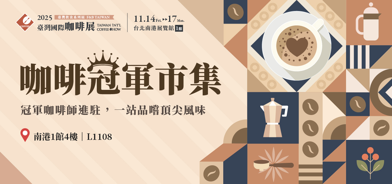 去年首次登場即大獲好評的【咖啡冠軍市集】,今年再度集結歷屆台灣冠軍齊聚展場!