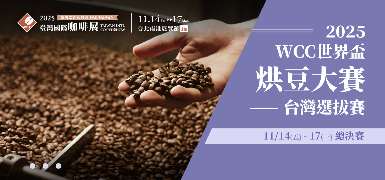 「2025 WCC 世界盃烘豆大賽台灣選拔賽」將由全台入選烘豆師登上咖啡展比賽舞台,每位選手將透過咖啡烘焙的過程,結合完美的賽豆比例,妝點咖啡風味的完美樣貌。為期四日的總決賽,將選出代表台灣前進比利時布魯塞爾出賽2026年世界盃烘豆大賽的冠軍烘豆師!