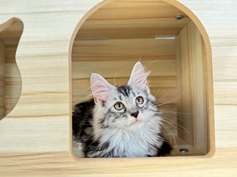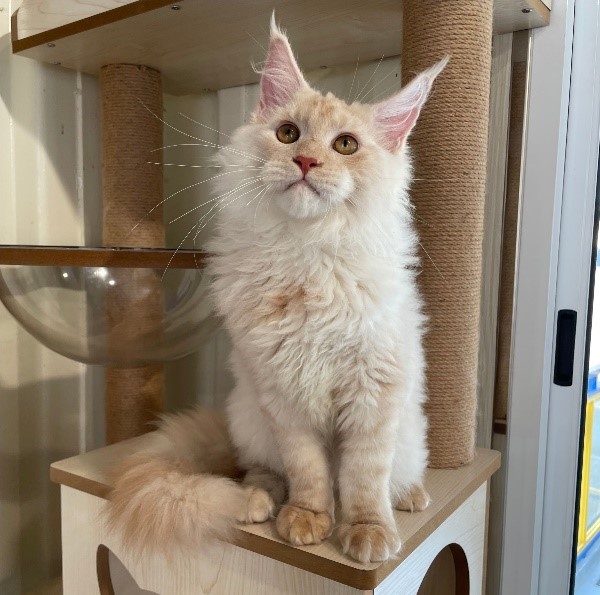 緬因貓屬於大型貓之一,是體型最大的家貓品種,也被稱為溫柔的巨人。 通常牠們的體格會非常強壯,胸部、腹部也會很寬闊,骨架比一般家貓來的大又重。 但整體看起來可說是相當勻稱,加上個性溫和親人,是許多養貓人的終極夢想! 顏色毛色呈現有相多表現,純色系.大理石紋.魚骨紋……等等