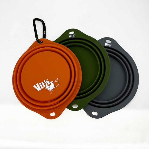 採用食用級安全矽膠製成,搭配戶外風格的配色與元素設計,並配有 VILA 專屬 LOGO 掛勾。可折疊收納,節省空間,攜帶便利。材質易於清洗,無論裝水或飼料都十分合適,是外出旅行、散步的必備寵物碗。
