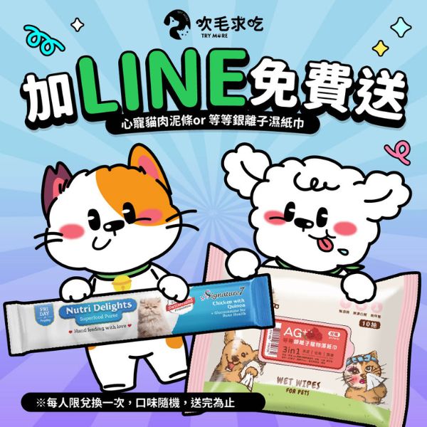 只要加入毛孩好朋友的官方LINE,並關注毛孩好朋友官方IG,即可領取逗貓棒或狗咬繩玩具(二擇一)乙份。