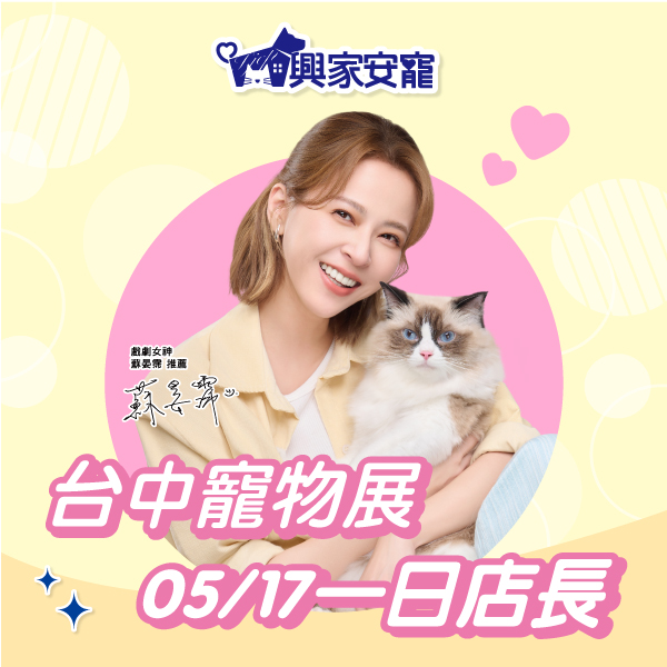戲劇女神蘇晏霈將於05/17(六)寵物展擔任興家安寵一日店長