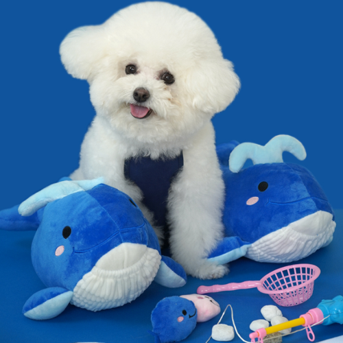 giant whale has snack pockets on the whale's belly and back, on its back.