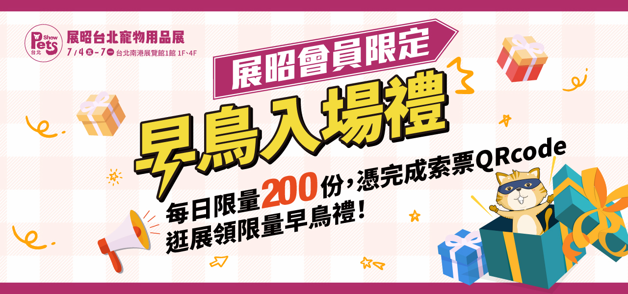 展昭會員限定!每日前200名憑完成索票QR Code入場者,即可獲得寵宇宙限量早鳥禮!