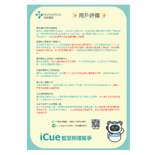 We got to know iCue through a government program, and with the meticulous and proactive assistance of the WeThinkCare team, it has greatly benefited both the residents and the staff of our institution. On one occasion, the system alerted us to a resident's rapid breathing, and nursing staff and caregivers immediately took action and decided to send the resident to the hospital for treatment. The resident received timely medical attention. We are excited for the WeThinkCare team to continue providing more quality services and products.