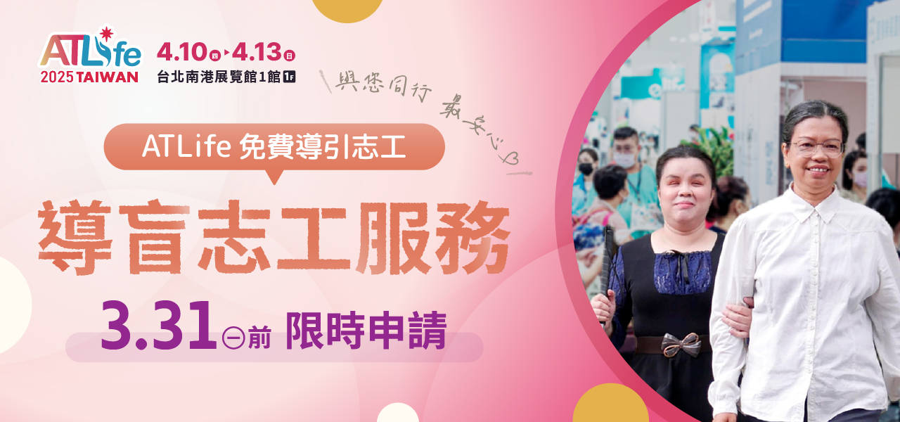 展期間陪伴並協助視障者參觀ATLife展區。不含導覽服務,請申請者事先安排欲參觀攤位。
