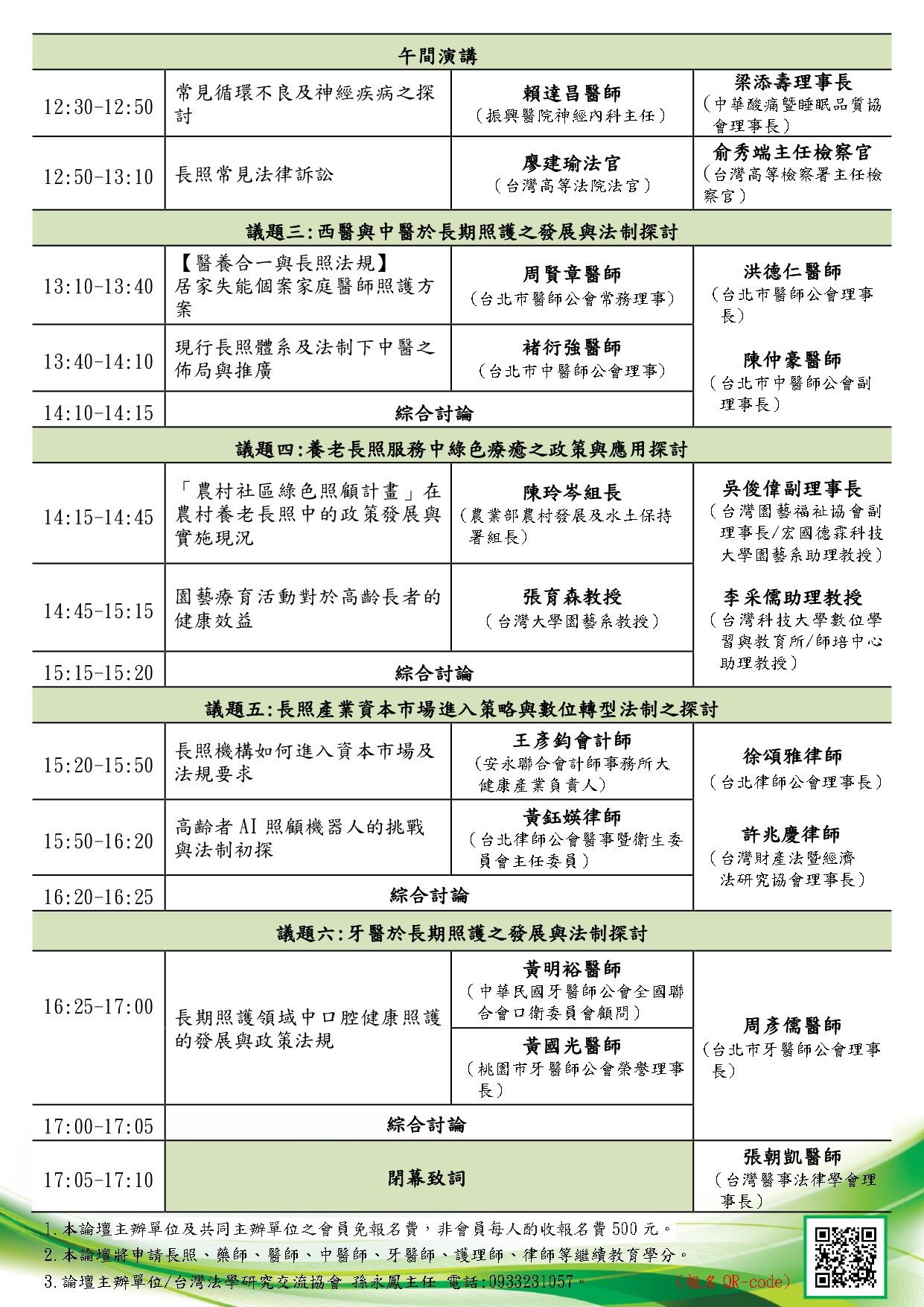 2.本論壇將申請長照、藥師、醫師、中醫師、牙醫師、護理師、律師等繼續教育學分。