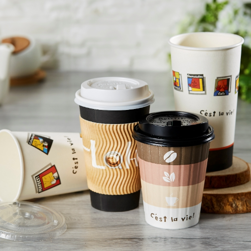Hot and cold paper cups available in 8, 12, 16, 20, and 22oz sizes. Made with food-grade materials and PE coating for water and oil resistance. Supports full-color digital printing and custom branding