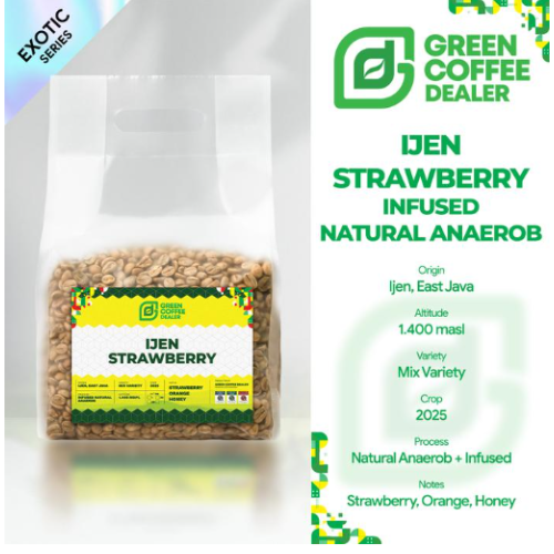 This is a Green Coffee Bean product: Ijen Strawberry Infused Anaerobic Natural.