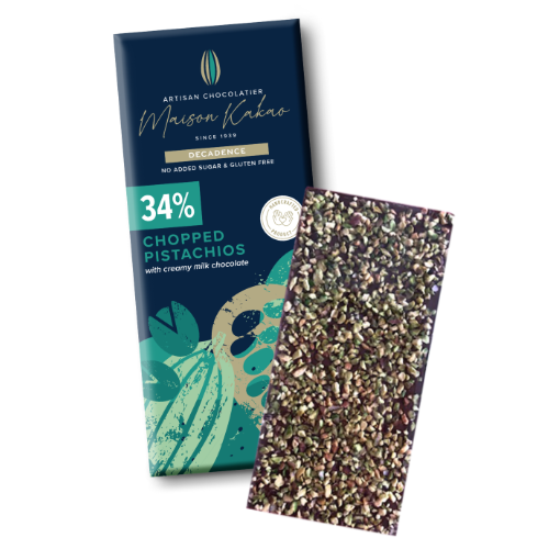 Dedadence Collection - Chopped Pistachios with Creamy Milk Chocolate, 34% (No added sugar)