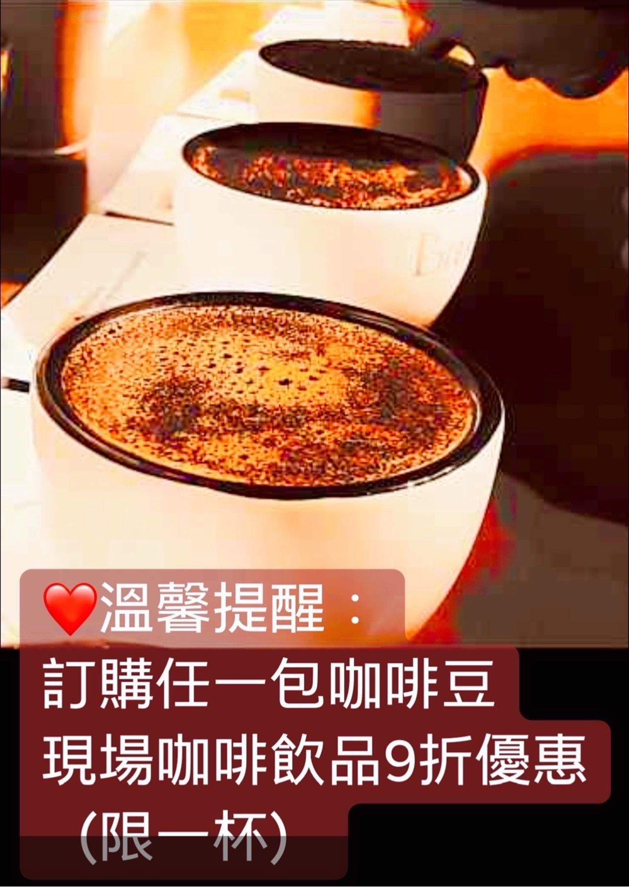 凡購買咖啡豆,現場飲品95折優惠 持國旅卡儲值消費,95折優惠