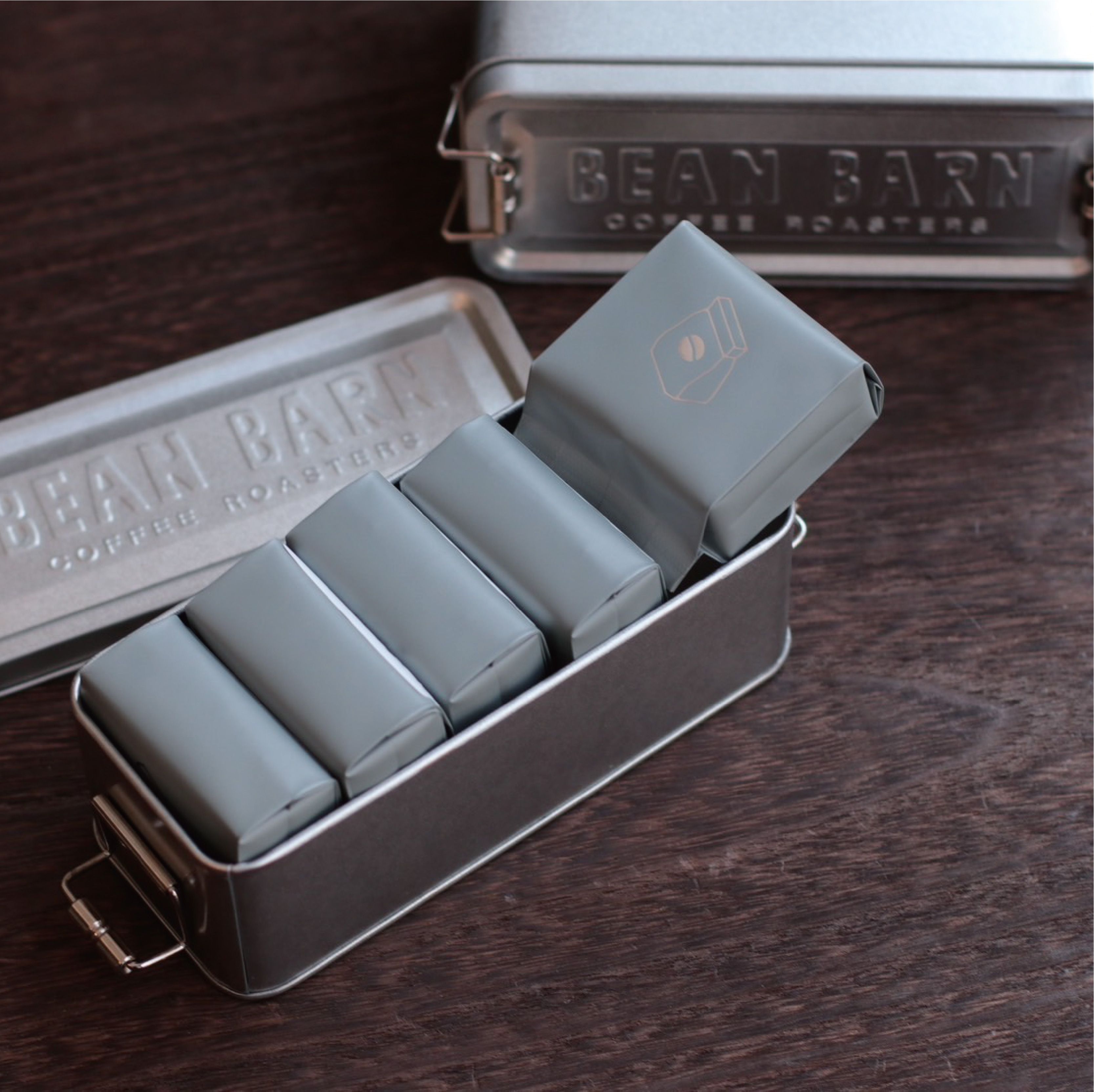 品名|BEAN BARN 咖啡便當 內容|咖啡熟豆5包(含鐵盒) 規格|每包16克 便當口味: |1號便當| 5包淺焙 / 淺中焙豆,混搭不同產區、處理法 |2號便當| 2包淺焙 / 淺中焙豆,2包中焙豆,1包中深焙豆 |3號便當| 1包淺焙 / 淺中焙豆,2包中焙豆,2包中深焙豆 |日光便當| 5包日曬豆,混搭不同焙度 |水姑娘便當| 5包水洗豆,混搭不同焙度