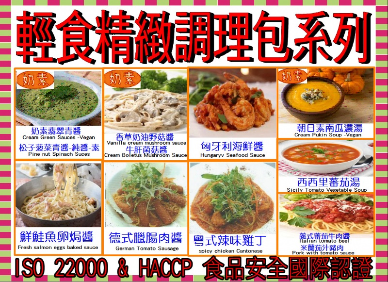 為專業Haccp Iso認證工廠生產 為知名飯店 義式料理所使用之商品 只要微波加熱 即是飯店主廚的手工料理 方便操作 穩定的品質 深受好評 是出餐用的好夥伴