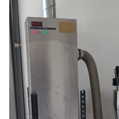 咖啡烘焙專用後燃機,(BURNER奔能)是自 主開發前置混氣燃燒器,由plc程序點火控制 和l,達到高溫二次 燃燒(450°C~800°C),將烘焙油煙味完全 燃燒達到無煙輸出、烘焙味(95%)輸出和淨化 空氣效果。
