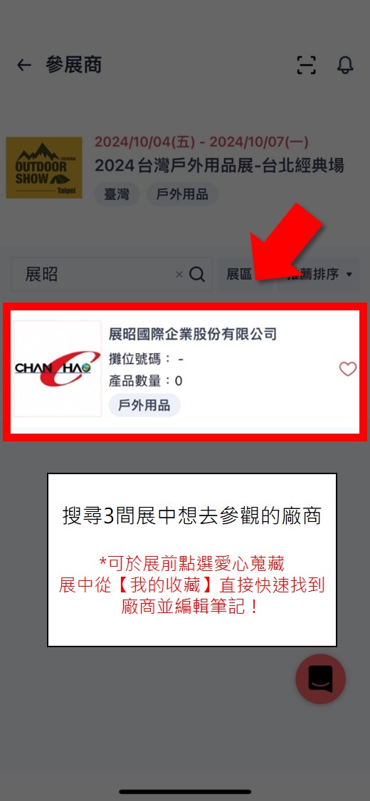 ※可以展前提前收藏廠商,展中即可從【我的收藏】快速找到廠商並編輯筆記!