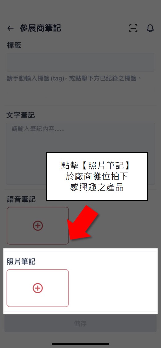 - 於【照片筆記】拍下現場有興趣之廠商產品