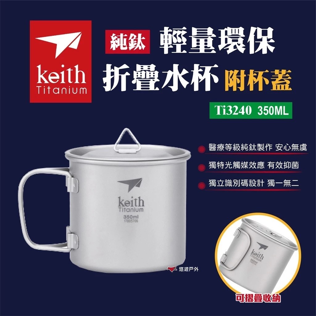 【Keith 鎧斯】純鈦杯輕量環保折疊水杯附杯蓋_350ml(Ti3240)茶杯