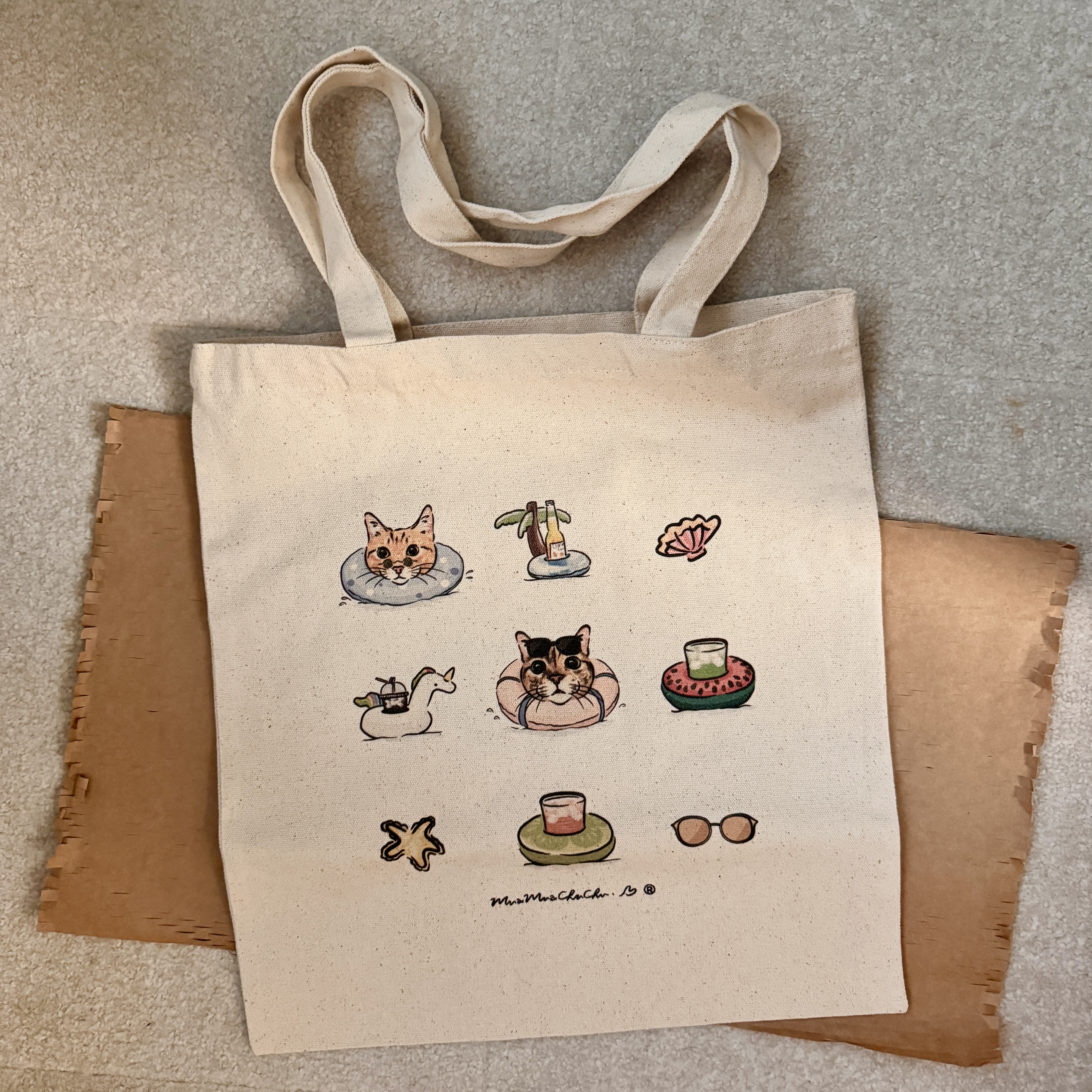 夏日海灘貓貓燕麥色A4帆布袋