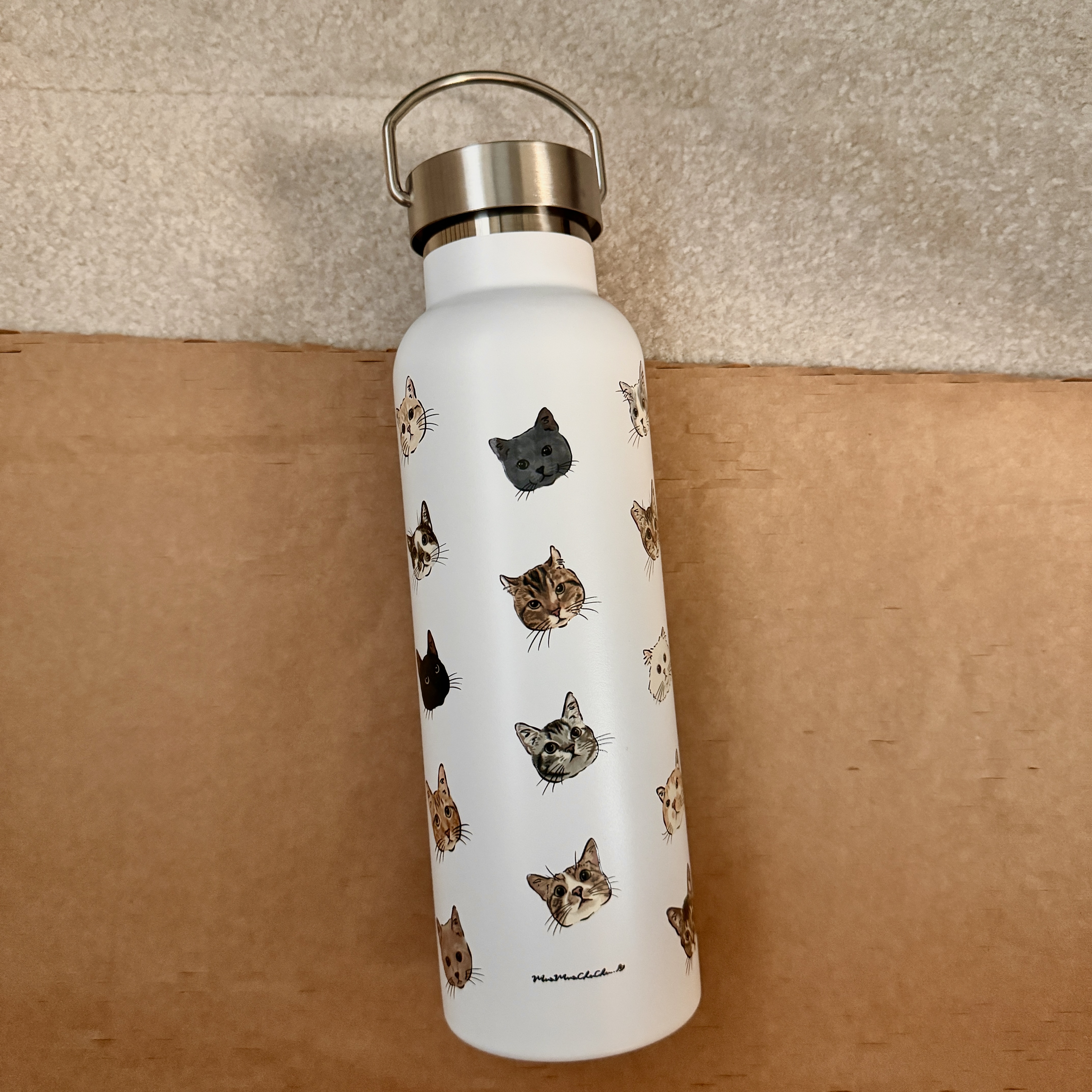 貓咪圖鑑600ml白色保溫瓶
