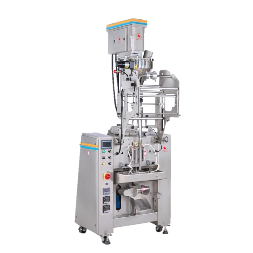 Pillow sealing. Dosing by auger volume; suitable for small quantity packaging, pellet or powder material. Such as flour, potato starch , coffee powder, milk powder, bean powder,... etc.