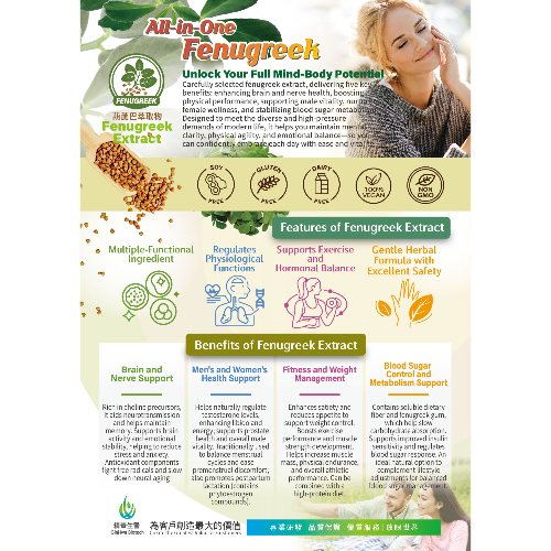 Unlock Your Full Mind-Body Potential! Carefully selected fenugreek extract, delivering five key benefits: enhancing brain and nerve health, boosting physical performance, supporting male vitality, nurturing female wellness, and stabilizing blood sugar metabolism. Designed to meet the diverse and high-pressure demands of modern life, it helps you maintain mental clarity, physical agility, and emotional balance—so you can confidently embrace each day with ease and vitality.