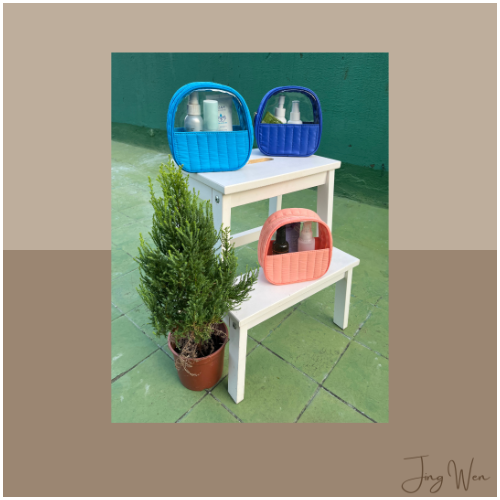 Organize your beauty essentials in style with these elegant quilted cosmetic bags. Available in three vibrant colors - sky blue, navy blue, and coral pink - each bag features a sophisticated diamond-quilted pattern that adds texture and visual appeal.