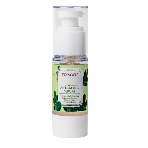 TOP-GEL Anti-Aging Serum features a fresh, non-sticky formula designed to help maintain soft, hydrated skin. Enriched with Cactus Fruit Extract, Allantoin, and Pro-Vitamin B5, it supports overall skin radiance and comfort. This product is HALAL certified, formulated without alcohol, animal-derived ingredients, fragrance, or colorants.