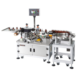 .New vertical labeling design. Easy star wheel changeover for switching to different sized vial labeling. This high precision, high speed labeling machine is suitable for bottle diameter from 15mm to 45mm.