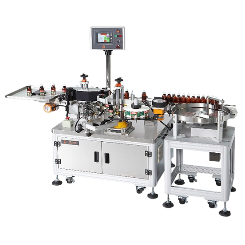 .Suitable for vertical labeling for all kinds of round bottles from various industries. This machine is capable of labeling full wrap round or half wrap round labels and widely used for pharmaceutical, cosmetics, food & beverage and container labeling.