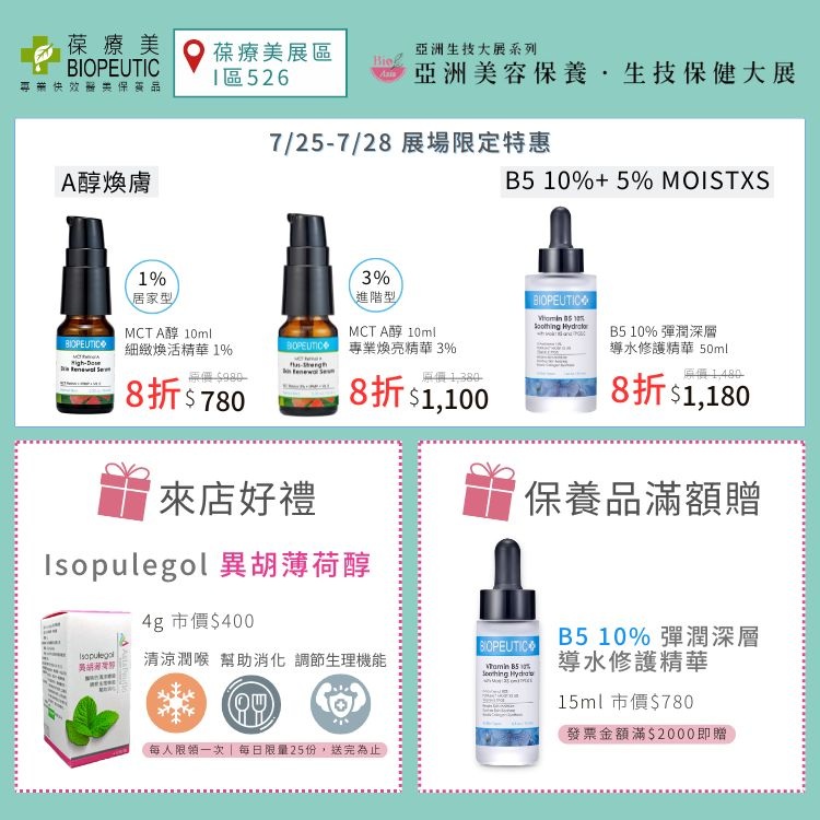 - 展出產品與活動內容請以現場為主,如有需求請洽詢該廠商。更多參展廠商與產品內容,都在亞洲美容保養.生技保健大展!