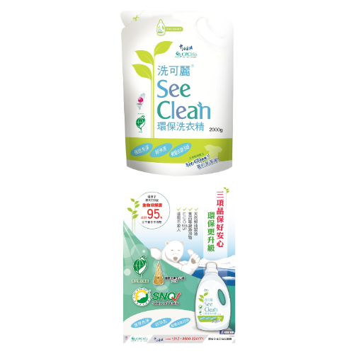 See Clean 洗可麗環保洗衣精是一款結合潔淨力與環保理念的優質洗衣產品,通過環保標章認證,讓每一次洗衣都能兼顧家人健康與地球永續。採用天然來源的溫和成分,能深入衣物纖維,有效去除污漬與異味,同時不殘留化學物質,穿得更安心。無論是機洗還是手洗,都能展現卓越洗淨力。清新自然的香氣,讓衣物洗後散發舒適芬芳,是講究生活品質與環保意識家庭的最佳選擇。