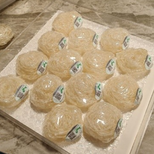 即炖燕窝玫瑰形,一粒5克,用户只需简单操作即可直接炖煮的燕窝产品。这种形式的燕窝特别适合生活节奏快、没有太多时间处理燕窝原料的人群。