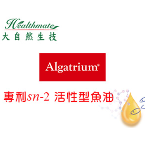 來自西班牙的專利sn-2活性型魚油(Algatrium®)以獨家溫和酵素製程生產出高濃度DHA含量70%、Omega-3高達85%以上,與母乳DHA結構相近較好吸收,專利sn-2活性型魚油,榮獲2008年歐洲食品創新原料獎,具有ISO 9001、HACCP認證,並取得多項世界功效專利;並已發表數十篇人體臨床驗證於國際期刊,可協助調節生理機能、有助於健康維持。