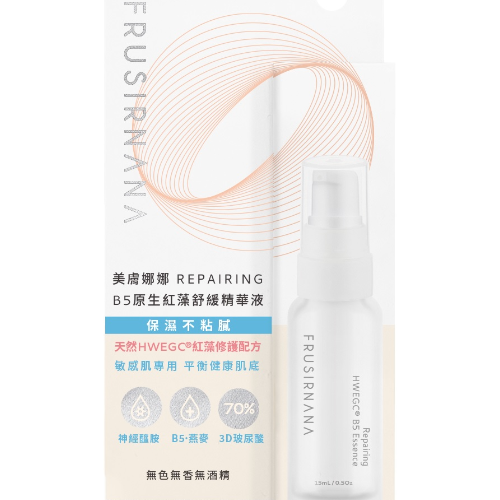 採用台灣研發專利特色原料HWEGC®紅藻舒敏成份能提升保濕力、肌膚修護,